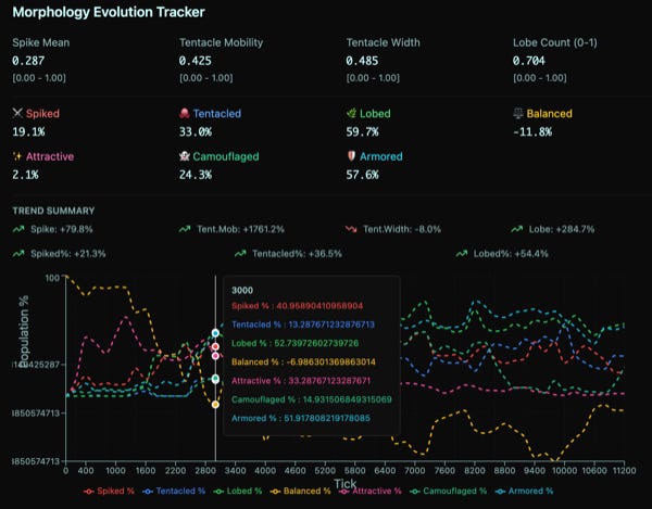 Soup of Life (also via Matt Muir) — A continuously running artificial life simulation where organisms emerge, evolve, and go extinct. You need to just let it run. You can add AI narrative to it, which is predictably awful in style, but might help “explain” it. It’s also eventually pretty and has a ton of interactive data vis and animation.