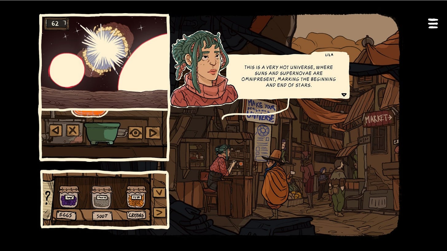 🪐 As a personal aside, I’ve been playing visual novel-esque sf classic game Universe for Sale and thinking about this generation of “worlds” from ingredients. Lila’s worlds are more extreme, and the more we model the real world the less we can generate them. And where does the weird go when people stop walking through walls… I suppose the usual complaint of a small segment of us.